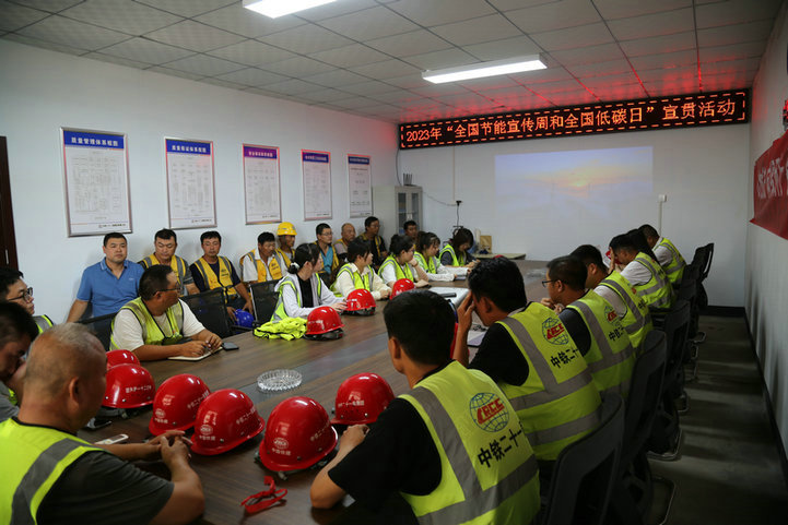 項(xiàng)目部通過播放宣傳周主題宣傳片、宣讀倡議書、講解低碳生活常識(shí)等方式,向大家宣傳普及節(jié)能降碳常識(shí),倡導(dǎo)綠色生態(tài)、健康環(huán)保的工作生活方式;引導(dǎo)全員以實(shí)際行動(dòng)珍惜糧食、節(jié)約用水用電、保護(hù)環(huán)境,大力弘揚(yáng)勤儉節(jié)約的好習(xí)慣好傳統(tǒng),動(dòng)員大家積極參與節(jié)能減排行動(dòng),成為生態(tài)文明的推動(dòng)者和綠色生活的踐行者。