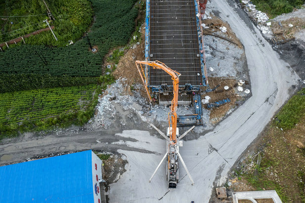 湯河2號大橋分別連接黑松谷和黑影崗隧道,是標(biāo)段控制性工程之一。臨邊防護(hù)與安全保障是施工中的重中之重。面對工程跨越既有鐵路、公路及河流,施工環(huán)境差、安全風(fēng)險疊加、工期要求緊,雨水頻繁等挑戰(zhàn),中鐵二十三局集團(tuán)沈白高鐵項目部三分部,舉全員之力,不斷加大人、財、物投入力度,分別在跨越鐵路和公路上方搭設(shè)鋼構(gòu)防護(hù)棚洞各一座,為掛籃施工和混凝土澆筑開辟了綠色通道。他們結(jié)合工程進(jìn)展及天氣變化情況,不斷優(yōu)化施工方案,動態(tài)調(diào)整施工順序,明確任務(wù)圖、時間表,倒排工期,工期節(jié)點細(xì)化到天。牢牢把控跨線高空作業(yè)、混凝土澆筑、橋梁張拉等關(guān)鍵環(huán)節(jié),關(guān)鍵工序責(zé)任到人、專人盯守,安全優(yōu)質(zhì)高效地完成了鉆孔樁70根、承臺7個、墩柱5個、臺身2個及4孔32米雙線簡支梁+(32+48+32)米雙線連續(xù)梁。