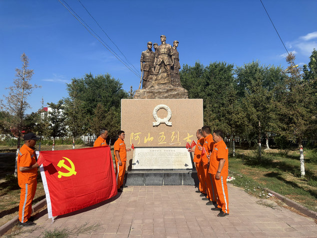 北屯訊(通訊員 臧明超馬冬玲) 為進一步弘揚黨的優(yōu)良傳統(tǒng),推進黨史學習教育常態(tài)化、長效化,引導黨員深入學習貫徹黨的二十大全會精神,不斷提升黨組織戰(zhàn)斗堡壘作用和黨員先鋒模范作用,8月1日,兵團交建北屯分公司黨支部開展“黨旗映天山”主題黨日活動。