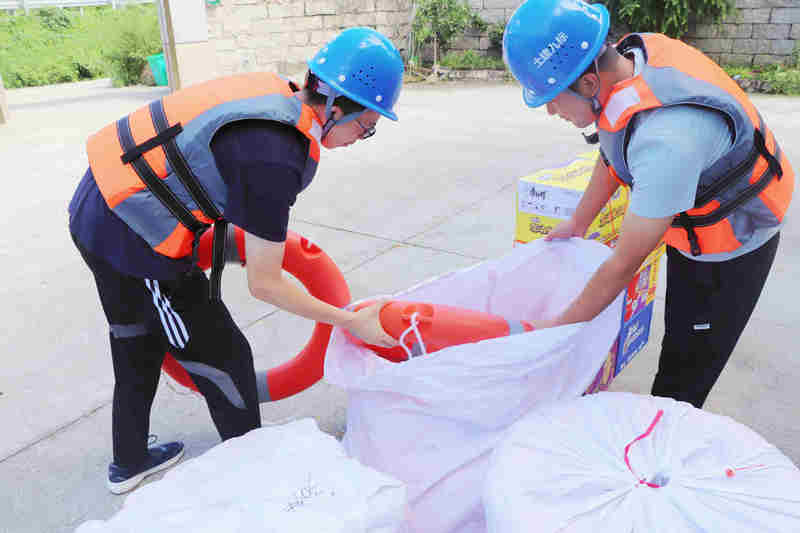 強(qiáng)化預(yù)警,儲(chǔ)備物資。在防臺(tái)期間,項(xiàng)目部時(shí)刻緊盯臺(tái)風(fēng)動(dòng)向和氣象變化,通過微信、釘釘?shù)男问酵▓?bào)及時(shí)轉(zhuǎn)發(fā)氣象及地址災(zāi)害預(yù)警信息。按照“寧可備而不用,不可用而無備”的原則,建立完善防臺(tái)應(yīng)急預(yù)案,多方采購(gòu)救生衣、救生圈、防汛沙袋、鐵鍬、方便面等應(yīng)急物資。