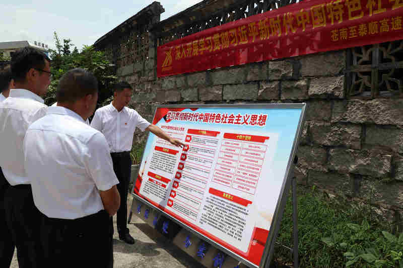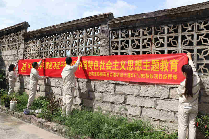 此外,該黨支部還精心制作主題教育展板、宣傳橫幅及海報等,使全體黨員在“看、學(xué)、思、悟”過程中系統(tǒng)學(xué)習(xí)了習(xí)近平新時代中國特色社會主義思想的形成過程、科學(xué)體系、實踐要求和重要意義。黨員奚太龍在看完展板后說道:“我將在今后的工作中更加嚴(yán)格要求自己,不斷創(chuàng)新工作方法,發(fā)揮先鋒模范作用,以良好的黨性修養(yǎng)和昂揚的精神風(fēng)貌全身心投入到工作中,為將蒼泰高速公路修建成一條品質(zhì)路、共富路貢獻自己的力量”。