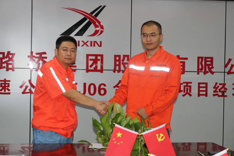 北新路橋集團長沙分公司安徽宿固6標項目舉行的“導師帶徒”活動啟動儀式暨簽約儀式。