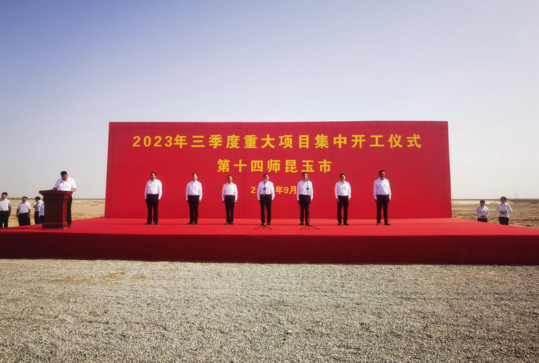 9月6日上午,新疆生產(chǎn)建設(shè)兵團(tuán)十四師昆玉市2023年三季度重大項(xiàng)目集中開工儀式在中鐵二十一局集團(tuán)承建的昆玉市公鐵聯(lián)運(yùn)樞紐工程鐵路專用線項(xiàng)目舉行。十四師昆玉市黨委書記、政委蔣欣出席開工儀式并致辭,黨委副書記、師長(zhǎng)、昆玉市政府黨組書記買買提艾力·吐爾洪主持開工儀式,項(xiàng)目經(jīng)理趙鋒代表施工單位作表態(tài)發(fā)言。十四師昆玉市有關(guān)單位負(fù)責(zé)人及施工單位共200余人參加開工儀式。