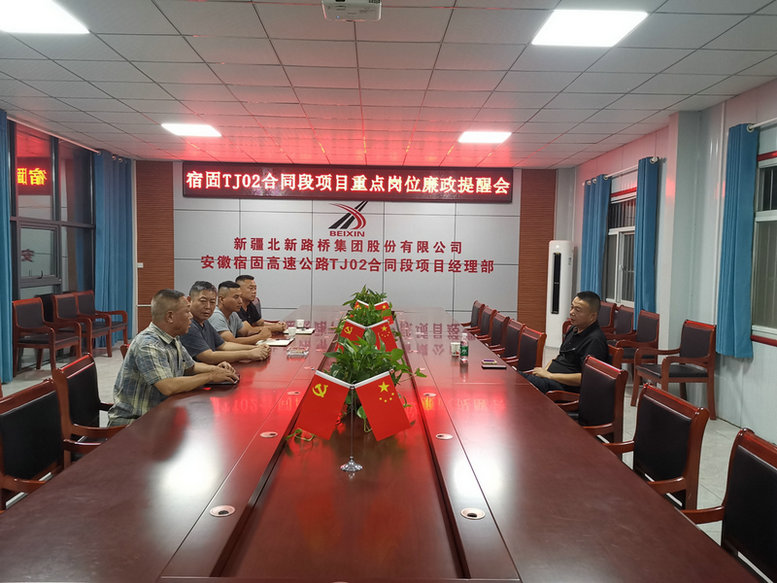 宿州訊(通訊員 劉繼紅)廉潔自律,警鐘常鳴。為持續(xù)增強項目職工廉潔意識,筑牢廉潔自律底線、紅線,持續(xù)推進主題教育走深走實,近日,兵團交建安徽宿固TJ02合同段項目召開重點崗位廉政提醒會,項目部工程計量、結(jié)算、材料相關(guān)負責(zé)人參加會議。