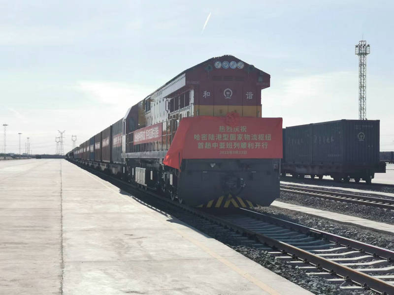 9月23日11時(shí)30分,哈密路港中心城北物流港鞭炮齊鳴,哈密陸港型國家物流樞紐首趟中亞班列在和諧號(hào)火車頭洪亮有力的汽笛聲中,伴隨著五彩煙花緩緩駛向哈密火車站,標(biāo)志著由中鐵二十一局一公司負(fù)責(zé)施工的城北公鐵聯(lián)運(yùn)物流園鐵路專用線全線開通,至此哈密城北物流港正式投入運(yùn)營。