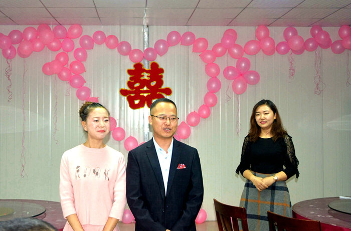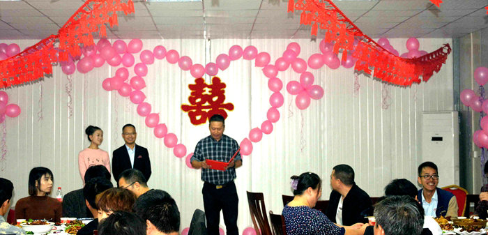 項目經(jīng)理為新人證婚,希望兩位新人永結(jié)同心、白頭偕老、共建幸福美滿的家庭,用聰明才智、青春熱情為項目建設(shè)增光添彩。作為全體職工“娘家”的公司工會派出代表為新人主持婚禮,代表公司工會向兩位新人送上禮品和祝福,希望兩位新人在今后的日子里互敬互愛、相濡以沫、風雨同舟,并介紹了他們相識、相知、相戀的愛情故事。