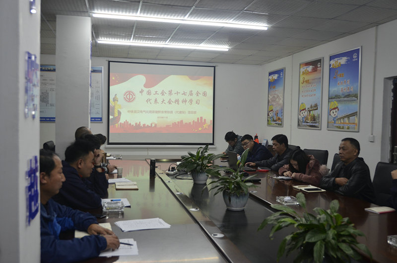 11月3日晚,中鐵武漢電氣化局新建黔張常代建段項(xiàng)目利用工作之余組織學(xué)習(xí)中國工會(huì)十七大精神,全體員工參會(huì)學(xué)習(xí)。工會(huì)主任唐武主持學(xué)習(xí)會(huì)議并強(qiáng)調(diào),要推動(dòng)習(xí)總書記重要講話和中國工會(huì)十七大精神在項(xiàng)目工會(huì)工作中形成生動(dòng)實(shí)踐。