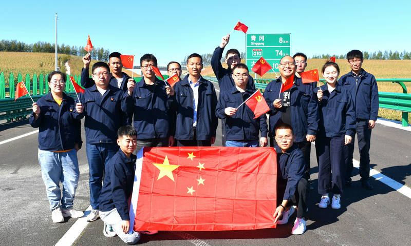承擔(dān)綏大高速公路施工的中鐵二十三局集團(tuán)參建職工勇于擔(dān)當(dāng)、守土盡責(zé),為龍江交通事業(yè)高品質(zhì)發(fā)展貢獻(xiàn)央企力量。以安全、優(yōu)質(zhì)、高效的優(yōu)異成績,為祖國74華誕獻(xiàn)禮,祝福偉大祖國日新月異、繁榮昌盛、國泰民安,生日快樂! (楊景霜 朱晨)