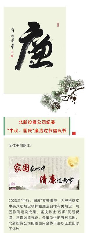 北新投資公司紀(jì)委│“中秋、國(guó)慶”廉潔過節(jié)倡議書