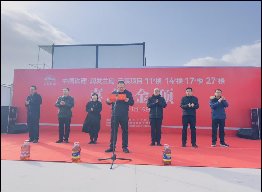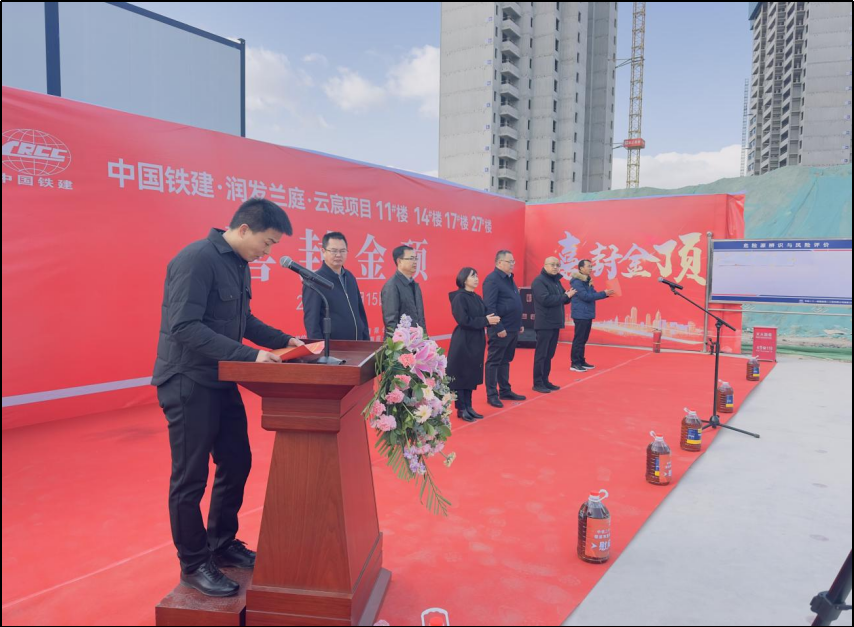 2023年11月15日上午,中國鐵建·潤發(fā)蘭庭·云宸項目封頂儀式盛大啟幕,德盛和公司、銀川鐵盛公司、二公司潤發(fā)蘭庭項目部、監(jiān)理單位等領導及負責人共同出席,一同見證了這一激動人心的榮耀時刻。項目全面封頂標志著工程建設邁入新的階段,業(yè)主也離美好生活更進一步。