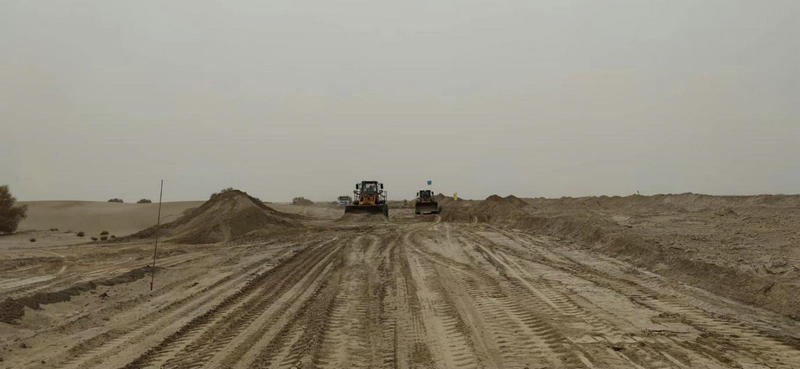 G314線公路作為連接新和和沙雅的重要干線道路,一直以來都面臨著風沙侵襲的困擾。由于地處大漠之中,沙塵天氣頻繁,風沙揚起后會嚴重影響道路的可行性和行車安全性。為了解決這一問題,當?shù)卣e極響應,投入大量人力物力進行風積沙路基施工。