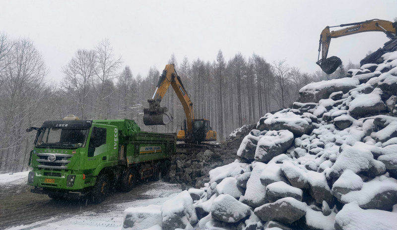 為了應對長白山腹地暴雪、冰凍、寒流等極端天氣頻發(fā)狀況,項目部提前對路窄、坡陡、彎急道路的錯車平臺進行了修繕加固。3支清雪突擊隊嚴陣以待,做到了隨下隨清,保證車輛運輸?shù)陌踩珪惩?。目前項目已儲備冬施需要的中?.7萬立方米、巖棉保溫被13600平方米、防滑爐灰3000立方米、融雪劑176噸等物資,冬施期間物料儲量充足。