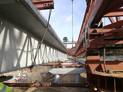 頭炮二號(hào)大橋位于河北省張家口市赤城縣頭炮村,大橋全長(zhǎng)277米,9跨共計(jì)108片預(yù)制T梁。該地區(qū)臨近頭炮村又是路基和涵洞施工交叉點(diǎn),對(duì)現(xiàn)場(chǎng)施工造成了極大的不便,項(xiàng)目部認(rèn)真踐行高管局、籌建處的“綠色品質(zhì)示范工程”核心理念,統(tǒng)籌現(xiàn)場(chǎng)管理,攻堅(jiān)克難,加大安防投入,歷時(shí)兩個(gè)多月,順利完成了全部預(yù)制T梁架設(shè)。兩座大橋架梁過(guò)程中,項(xiàng)目部嚴(yán)格按施工規(guī)范,根據(jù)工期節(jié)點(diǎn)和現(xiàn)場(chǎng)實(shí)際情況,制定詳細(xì)施工計(jì)劃,同時(shí)配合監(jiān)理單位嚴(yán)控質(zhì)量,死保安全,搶趕進(jìn)度、科學(xué)組織,多措并舉。對(duì)施工中存在的問(wèn)題及時(shí)糾偏。當(dāng)天下午,ZD1副駐地楊永民到達(dá)架梁現(xiàn)場(chǎng),對(duì)頭炮2號(hào)大橋橋梁支座等進(jìn)行檢查。檢查過(guò)后,他對(duì)于項(xiàng)目部現(xiàn)在取得的成績(jī)表示肯定。目前延崇高速建設(shè)已經(jīng)進(jìn)入重要節(jié)點(diǎn),他希望項(xiàng)目部再接再厲,立足安全生產(chǎn),把控現(xiàn)場(chǎng)生產(chǎn)規(guī)范,牢固安全紅線意識(shí),繼續(xù)搶趕進(jìn)度,為河北高速建設(shè)繼續(xù)做出貢獻(xiàn)。