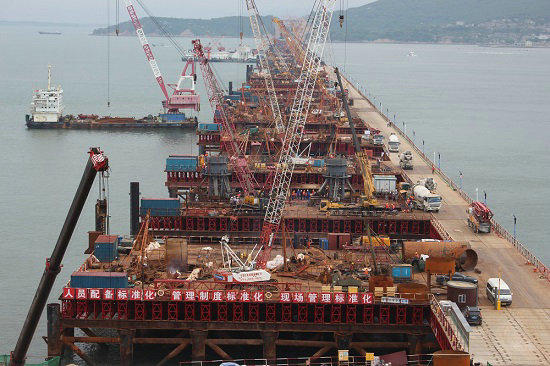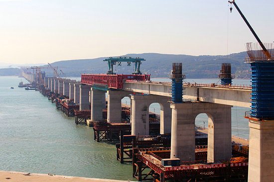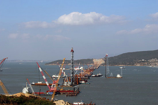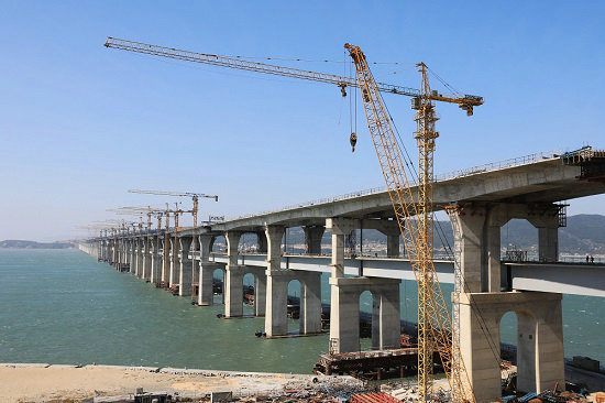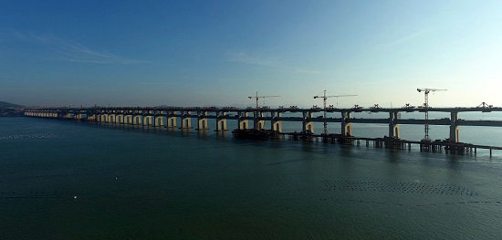 歷經(jīng)五年艱苦卓絕的努力拼搏,中鐵建大橋工程局集團(tuán)一公司福平鐵路平潭海峽公鐵兩用大橋攻克了道道難關(guān)險(xiǎn)阻,解決了施工中遇到的所有難題,大橋在湛藍(lán)的大海上節(jié)節(jié)拔起,飛躍海峽,氣勢磅礴,已完成鐵路梁合龍,向公路梁合龍沖刺。