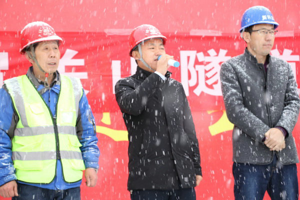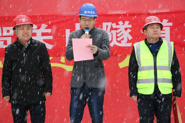 圖為中鐵二十一局三公司公司副總經(jīng)理魏惠民在貫通儀式上講話 平天高速公路關山隧道左線全長9585米、右線全長9651米,是全線第一長大隧道和重難點工程。設計為雙線四車道分離式隧道,設通風兼施工斜井1座、豎井1座,屬特長隧道,是平天高速公路控制性工程。中鐵二十一局三公司平天高速PTKZ1標項目部,擔負關山隧道進口左線5046米、右線5080米及斜井施工任務。
