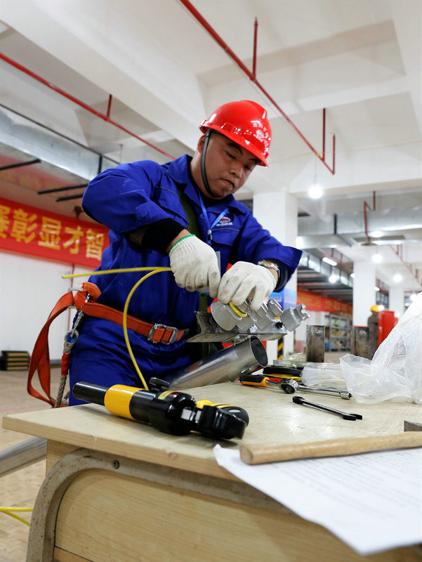 根據(jù)競(jìng)賽組委會(huì)要求,每個(gè)單位參賽項(xiàng)目不得超過三個(gè)。中鐵二十三局六公司渝黔項(xiàng)目充分準(zhǔn)備,精心謀劃,為取得優(yōu)異成績(jī),派出了以劉雙龍為代表的電工、游飛為首的測(cè)量團(tuán)隊(duì)、蔣有發(fā)為首的架子工團(tuán)隊(duì)角逐了實(shí)操技四項(xiàng)競(jìng)賽中的三項(xiàng)。為期兩天的競(jìng)賽中,參賽隊(duì)員在競(jìng)賽過程中沉著應(yīng)對(duì),積極拼搏,參賽的三個(gè)小項(xiàng)均取得名次,一舉奪得電工第一名、測(cè)量第一名、架子工第三名的優(yōu)異成績(jī)。