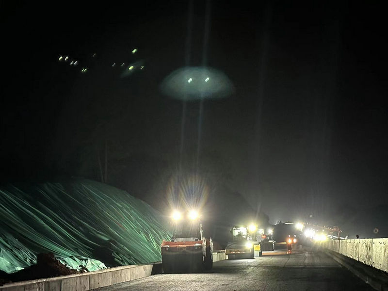 圖說:北新路橋集團(tuán)長沙分公司滬昆B1標(biāo)項(xiàng)目道路基層攤鋪碾壓施工 羅茂林?jǐn)z