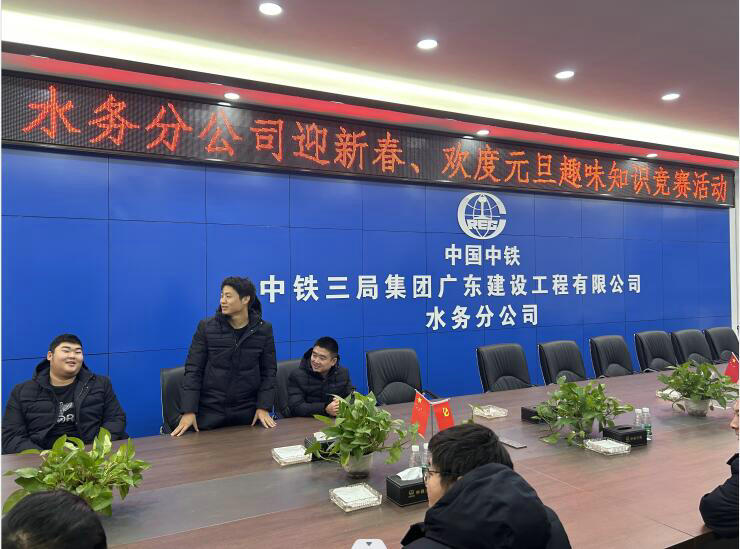 為了豐富員工的文化生活,增進(jìn)員工間的友誼與團(tuán)結(jié),提高員工的知識水平和綜合素質(zhì),中鐵三局廣東公司水務(wù)分公司于2024年1月1日,在會議室舉行“迎新春慶元旦趣味知識競賽活動”。
