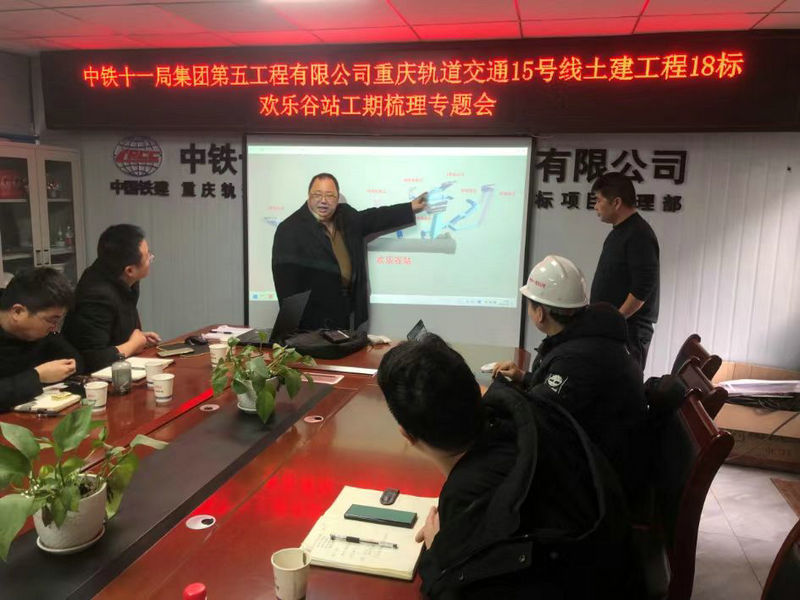 1月22日上午,中鐵建重慶軌道交通15號(hào)線二期總承包部指揮長(zhǎng)李兵到歡樂(lè)谷站現(xiàn)場(chǎng)組織召開統(tǒng)籌盾構(gòu)過(guò)站、區(qū)間貫通和車站附屬施工工期梳理專題會(huì)議,總承包部副指揮長(zhǎng)陳華富、總承包部工程管理部、18標(biāo)項(xiàng)目經(jīng)理趙建偉、盾構(gòu)總體負(fù)責(zé)人張建平、總工程師王賓、機(jī)電總工程師王磊和施工班組負(fù)責(zé)人等相關(guān)人員參加。