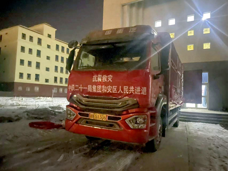 1月25日,中鐵二十一局救援人員驅(qū)車230公里,將救援物資緊急送往受烏什縣地震影響較重的阿拉爾市永寧鎮(zhèn)災區(qū),得到當?shù)卣块T及人民群眾的一致認可。