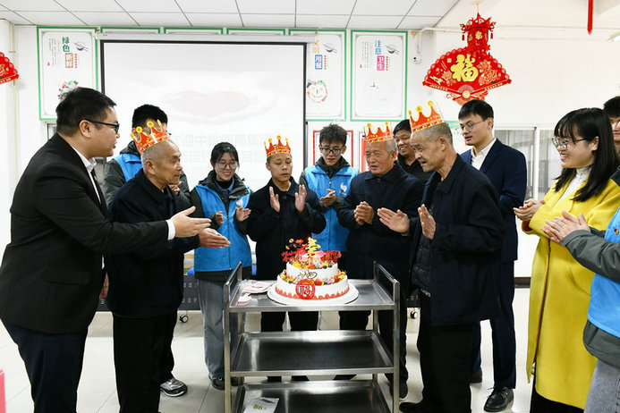 捐贈(zèng)現(xiàn)場,公司團(tuán)委書記李培潤與富平縣民政局黨組成員、敬老院院長余增亮給每位老人依次發(fā)放了鞋帽、牛奶、面包、大米、油等慰問品,幫老人們打掃了衛(wèi)生,整理了被褥,并與老人們圍坐一起進(jìn)行親切交談,了解他們在院的生活情況,并送上了集體生日。他們的到來使原本安靜的小院,充滿了歡聲和笑語。