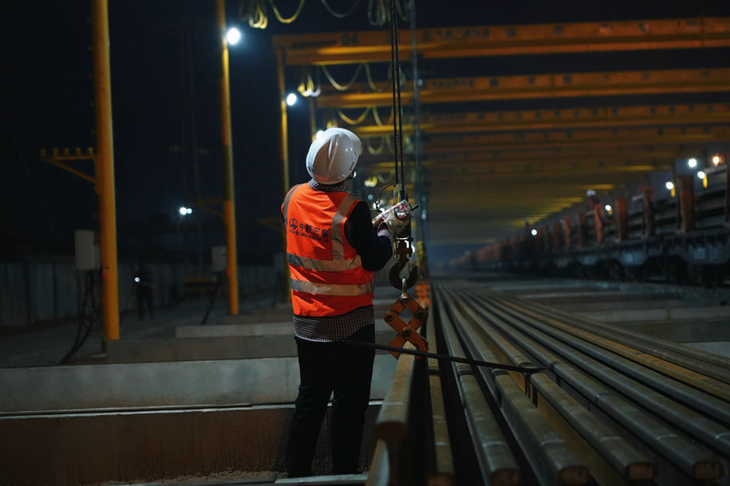宜昌東鋪軌基地內(nèi)設(shè)置長(zhǎng)軌存放區(qū)1處,配置有32臺(tái)固定式群吊,最大存軌能力112.5公里。長(zhǎng)軌進(jìn)場(chǎng)標(biāo)志著宜興鐵路鋼軌的生產(chǎn)、焊接、運(yùn)輸渠道已順利打通。