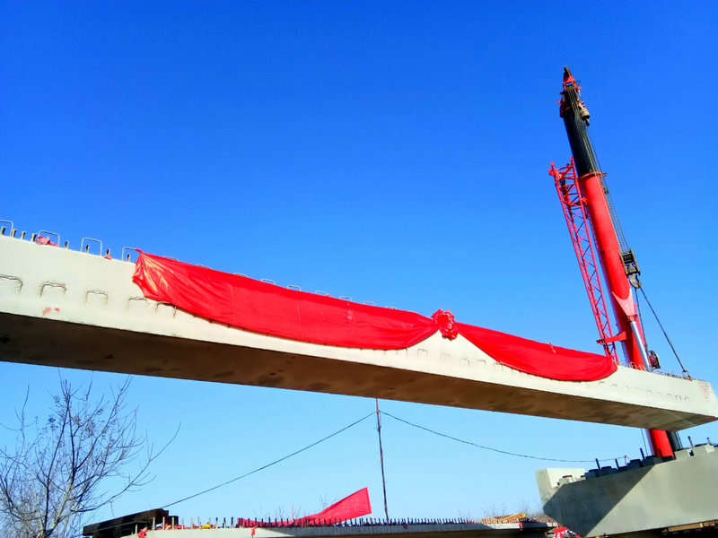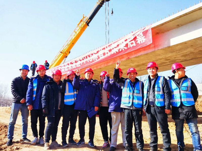 甜永TY13標(biāo)位于甘肅省慶陽(yáng)市慶城縣高樓鎮(zhèn)境內(nèi),銀川-百色高速公路(G69)甜水堡(寧甘界)經(jīng)慶城至永和(甘陜界)公路,長(zhǎng)8.79km,共有預(yù)制梁420片。其中預(yù)制16m空心板梁42片,預(yù)制20m空心板梁48片,預(yù)制20m箱梁52片,預(yù)制30m箱梁52片,預(yù)制40m箱梁226片。為保證首片梁的架設(shè)成功,項(xiàng)目部提前準(zhǔn)備,安排技術(shù)人員仔細(xì)核對(duì)待架板梁梁長(zhǎng)、編號(hào)以及支座型號(hào)、安裝位置,安排管理人員對(duì)施組人員進(jìn)行箱梁架設(shè)工藝技術(shù)交底和安全交底工作。同時(shí),項(xiàng)目部提前與各部門(mén)、管理人員、監(jiān)理人員、施組人員取得溝通,在材料、設(shè)備、測(cè)量、技術(shù)、安全方面做足、做實(shí)工作,為架梁做好充分準(zhǔn)備。經(jīng)過(guò)移梁、運(yùn)梁、架梁、落梁一系列動(dòng)作,首片箱梁成功架設(shè)。