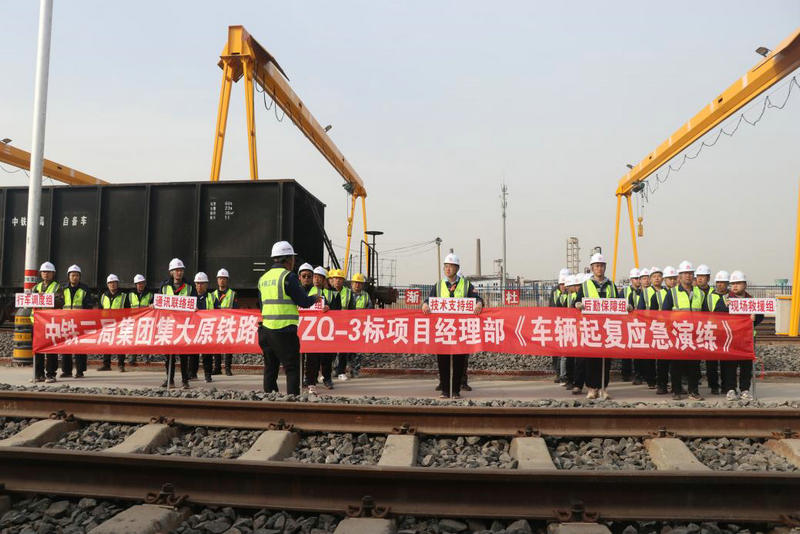 為提高運輸作業(yè)人員安全責(zé)任意識,增強應(yīng)對突發(fā)事件的能力和組織協(xié)調(diào)能力,3月23日上午,在集大原鐵路項目鋪架工區(qū)的施工現(xiàn)場,中鐵三局線橋公司運輸分公司開展了一場車輛起復(fù)應(yīng)急演練,邀請局指及監(jiān)理單位參加觀摩。
