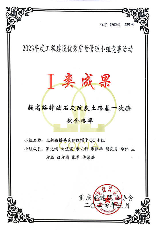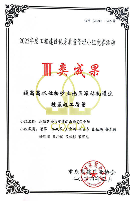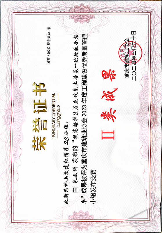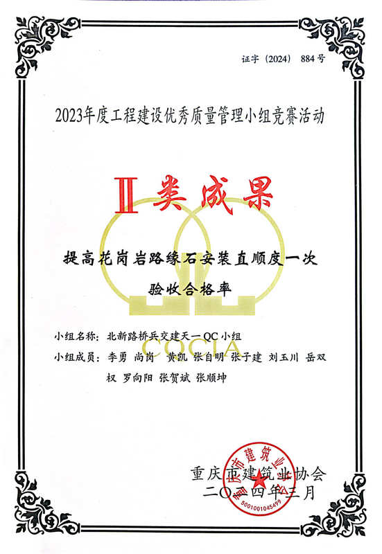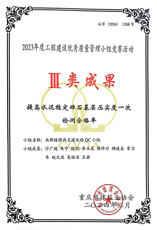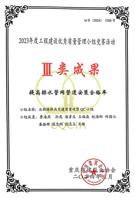 烏魯木齊訊(通訊員 許榮浩)近日,重慶市建筑業(yè)協(xié)會文件,關于通報重慶市建筑業(yè)協(xié)會2023年度工程建設優(yōu)秀質(zhì)量管理小組結果的決定,兵團交通建設有限公司榮獲一類成果1項、二類成果3項、三類成果6項。