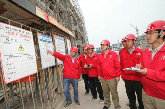 5、中鐵十八局集團建安公司副總經(jīng)理張曉鵬(左四)、北疆電廠項目經(jīng)理鞠正平(右二)、遵化項目經(jīng)理李緯(右一)等在現(xiàn)場辦公(曾海波 伍振 攝)