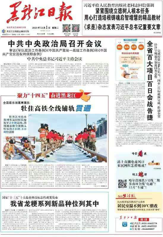 當(dāng)天,我們的鋪軌員工在長(zhǎng)龍一樣的鋪軌機(jī)掛有“中鐵十四局集團(tuán)”的標(biāo)牌下的風(fēng)采和筑路故事,被《人民日?qǐng)?bào)》、《中央電視臺(tái)》、《黑龍江電視臺(tái)》、《黑龍江日?qǐng)?bào)》等幾十家高端媒體宣傳報(bào)道。當(dāng)天,黑龍江鐵路發(fā)展有限責(zé)任公司發(fā)來(lái)賀電。2020.12.6黑龍江樺南