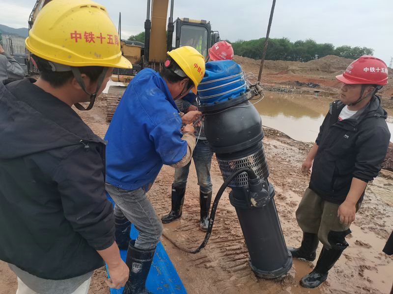 安裝大型泥漿泵 林茂輝攝與此同時,項(xiàng)目部購置了沙袋、繩索、鋼管、鐵鍬、泥漿泵、雨鞋雨衣、手電等一批搶險物資,并指定所屬施工隊(duì)的挖掘機(jī)、鏟車、自卸車為搶險備用機(jī)械設(shè)備。其次,他們成立了一個由項(xiàng)目經(jīng)理為組長、執(zhí)行經(jīng)理陳良兵等班子其他人員,各部門負(fù)責(zé)人、施工隊(duì)負(fù)責(zé)人為副組長或成員的防汛抗洪領(lǐng)導(dǎo)小組和一支由40名身強(qiáng)力壯員工組成的抗洪搶險突擊隊(duì)。此外密切關(guān)注氣象部門預(yù)警,并組織人員和機(jī)械加高加寬400多米長的江堤,24小時派人值班觀察水位變化。