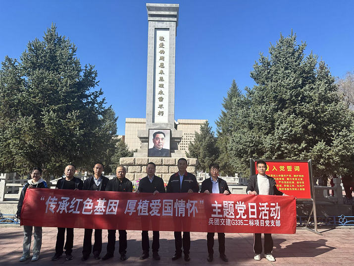石河子訊(通訊員 李宇通)為追尋革命先輩的光輝足跡、進一步傳承紅色基因,感悟紅色精神,近日,北新路橋集團兵團交建公司G335二標項目黨支部赴石總場周總理紀念館開展了“傳承紅色基因 厚植愛國情懷”主題黨日活動。