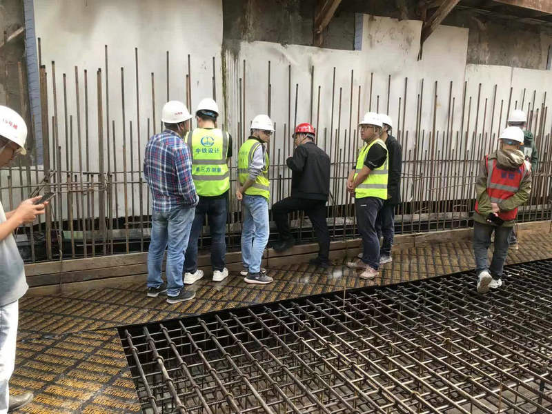 驗收小組首先集體踏勘了禮學(xué)路站2號出入口底板施工現(xiàn)場,對底板鋼筋、模板、混凝土、防水等分項工程內(nèi)容進行現(xiàn)場核查驗收。