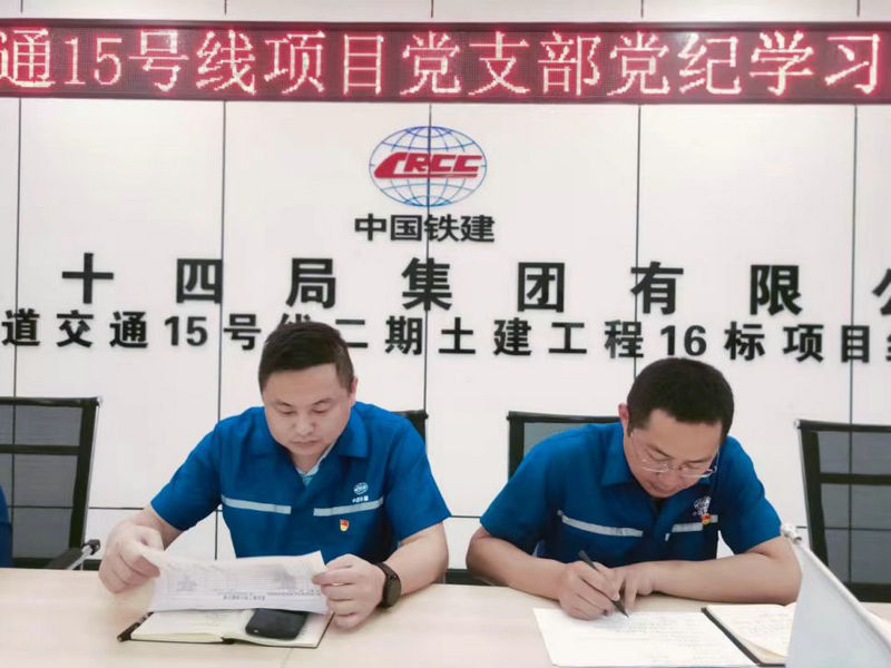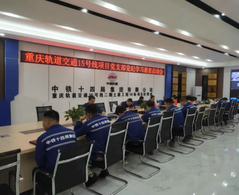 4月13日,中鐵建重慶軌道交通15號線二期總承包部16標14局項目黨支部,召開黨紀教育學習動員會,傳達《關于在全黨開展黨紀學習教育的通知》精神,對開展黨紀學習教育進行動員部署。