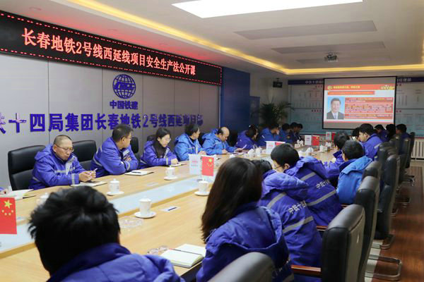 中國(guó)鐵路工程建設(shè)網(wǎng)訊(通訊員 王福生 范明溪 報(bào)道)12月4日,中鐵十四局集團(tuán)長(zhǎng)春地鐵2號(hào)線西延線項(xiàng)目部的員工們,剛剛吃完早餐就拿著筆記本三步并作兩步的往會(huì)議室奔去,生怕沒(méi)了座位,這是怎么回事呢?事情是這樣的,根據(jù)工作安排,今天上午,項(xiàng)目負(fù)責(zé)人周松為大家宣講《安全生產(chǎn)法》。