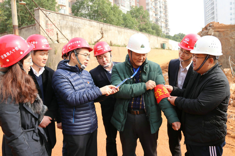 8、中鐵十八局集團(tuán)房地產(chǎn)公司執(zhí)行董事、總經(jīng)理翟巖、18公館項(xiàng)目副經(jīng)理李凌錕、項(xiàng)目書記李洪濤、建安公司長沙項(xiàng)目經(jīng)理任傳輝在督導(dǎo)安全生產(chǎn)(伍振 攝)