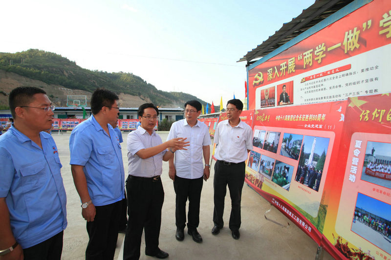 3、中鐵十八局集團(tuán)黨委宣傳部長陳仕奇(右三)、五公司黨委書記劉富華(右二)、副總經(jīng)理李世爭(右一)、延安管理部經(jīng)理潘素明(左一)等在一線調(diào)研。(伍振 攝)、