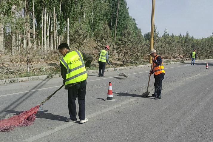 活動中,黨員干部、職工穿上熒光馬甲,手握掃把、簸箕等清掃工具,對各駐地生活區(qū)、施工段段區(qū)、駐地旁的鄉(xiāng)鎮(zhèn)街道衛(wèi)生易臟亂處進(jìn)行了清掃和整理。清理現(xiàn)場分工明確,清掃清運(yùn)緊張有序,現(xiàn)場一派熱火朝天的勞動景象。尤其是對駐地旁的鄉(xiāng)鎮(zhèn)街道進(jìn)行清掃,積極清理、配合默契,街道煥然一新,大家忙碌的身影形成了一道靚麗的風(fēng)景線,路過的鄉(xiāng)鎮(zhèn)居民及游客紛紛“點贊”。