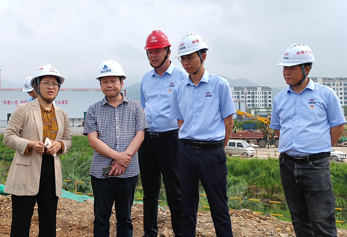 下午3點,葉芳珍一行來到常山江航電樞紐招賢電站施工現(xiàn)場,首先聽取了業(yè)主、監(jiān)理單位有關領導關于項目概況、隊伍進場、開工、安全文明施工、中鐵十五局兩次科學應對洪峰安全過境等情況。根據(jù)公司副總經(jīng)理兼常山江項目負責人黃偉安排,執(zhí)行經(jīng)理陳良兵向葉芳珍介紹了項目開工近8個月來為確保招賢項目導流墻、4座閘墩、鋼筋加工場和人員生命安全,組織人力和設備,利用黃土、砂石、鋼管等材料將位于工地的常山江阻斷400多米,形成一道頂寬6米、高10多米的安全堤壩,以及出臺應急預案、成立一支抗洪搶險突擊隊、備足防汛物資等情況。