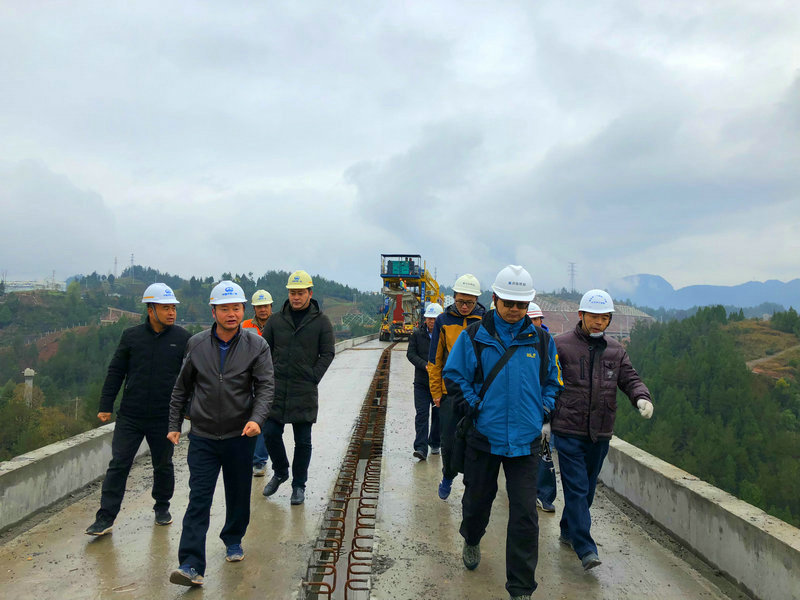 現(xiàn)場聽取匯報 在黔張常項目鐵爐堡特大橋施工現(xiàn)場,檢查組一行先后對橋面系施工作業(yè),架橋作業(yè)過程,現(xiàn)場檢查記錄和施工料具擺放及各項安全標(biāo)示標(biāo)牌設(shè)置等情況進行了檢查,并聽取了項目負(fù)責(zé)人對特大橋施工任務(wù)建設(shè)完成情況的匯報。隨后在有關(guān)人員的陪同下,檢查組對涪秀二線項目黔江鋪架基地、正陽雙線大橋濕接縫施工、內(nèi)頁資料及黔江站懷化端已鋪線路進行了查看。