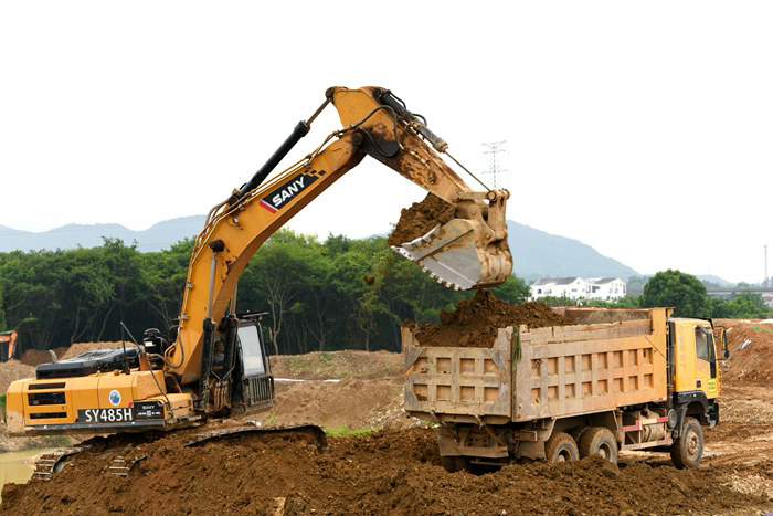 挖運黃土筑圍堰 黃偉攝