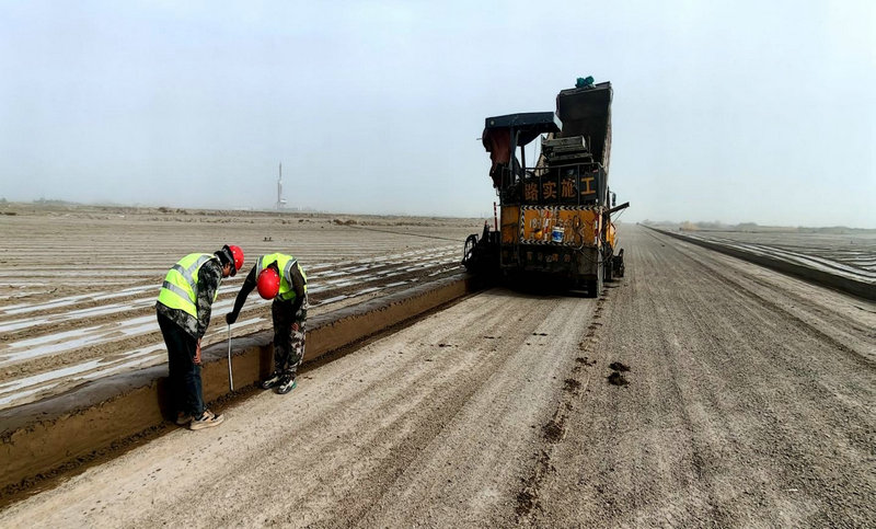 圖為:兵團建工水電集團八建公司沙雅項目部314國道施工