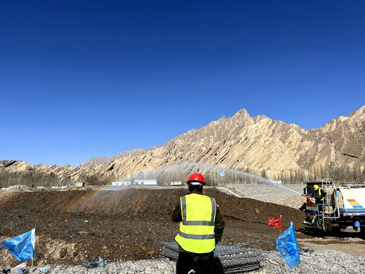圖為:兵團建工水電集團八建公司庫車河除險加固項目部施工施工中灑水降塵,美化施工環(huán)境。在工作中,他們以高度的敬業(yè)精神,兢兢業(yè)業(yè)地履行自己的職責。他們勇于挑戰(zhàn)困難,不斷追求卓越,為團隊的發(fā)展和目標的實現(xiàn)貢獻著自己的力量。他們還具備著良好的團隊合作精神,與同事們相互支持、協(xié)作,共同攻克一個又一個難關。他們的專業(yè)素養(yǎng)和工作態(tài)度,成為了大家學習的榜樣。