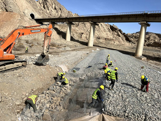 圖為:兵團建工水電集團八建公司庫車河除險加固項目部施工