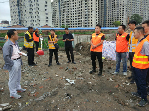 李總親自在施工現(xiàn)場(chǎng)技術(shù)人員講解施工難點(diǎn)