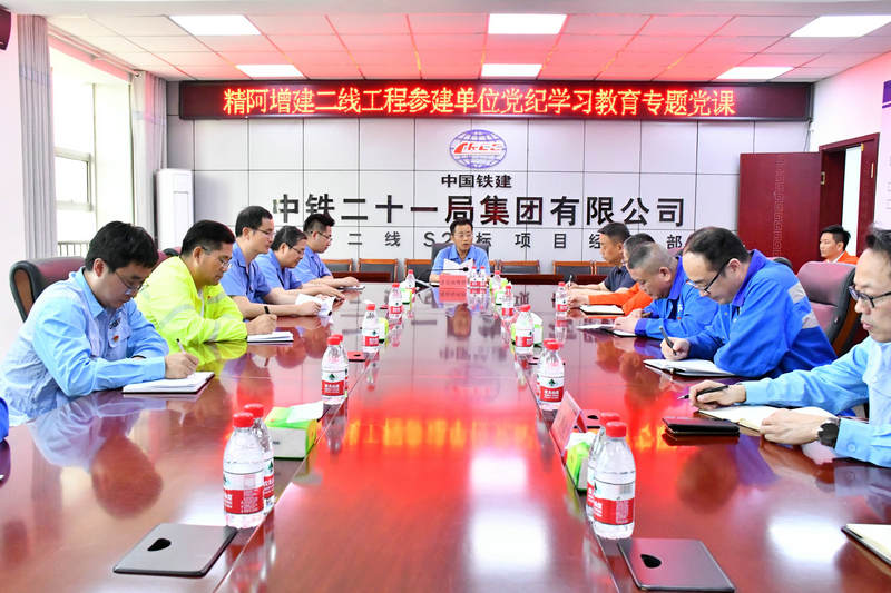 5月14日,中鐵二十一局精阿二線S2標(biāo)項(xiàng)目部黨工委為深入推進(jìn)黨紀(jì)學(xué)習(xí)教育,結(jié)合“學(xué)條例 守黨紀(jì) 正風(fēng)氣 精管理 促發(fā)展”反腐倡廉宣傳教育月活動(dòng),推動(dòng)與黨建共建單位互學(xué)互促同發(fā)展,邀請(qǐng)了烏魯木齊鐵路建設(shè)指揮部黨委副書記、紀(jì)委書記曹海峰為精阿項(xiàng)目參建單位上了一堂黨紀(jì)學(xué)習(xí)教育專題黨課,中鐵二十一局、鄭州中原、上海通號(hào)精阿增建二線項(xiàng)目部黨支部及烏魯木齊鐵路建設(shè)指揮部工管部、安質(zhì)部黨支部共23名黨員干部參加學(xué)習(xí)。