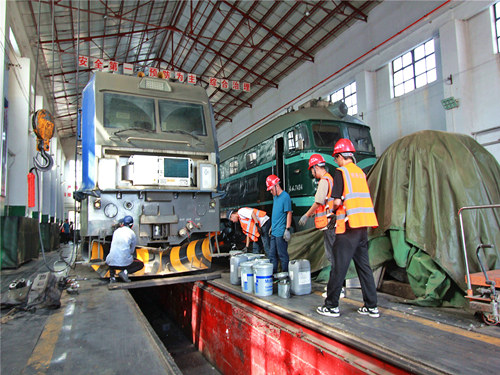 “只給了12個小時的作業(yè)時間,兩臺機(jī)車要進(jìn)行更換齒輪箱、壓縮機(jī)油、清洗濾網(wǎng)、端鉤撒沙器核檢等一系列修程,時間緊迫,任務(wù)繁重,運(yùn)轉(zhuǎn)和檢修兄弟聯(lián)合作戰(zhàn),我們等同在與時間賽跑”,檢修車間主任許剛介紹道。