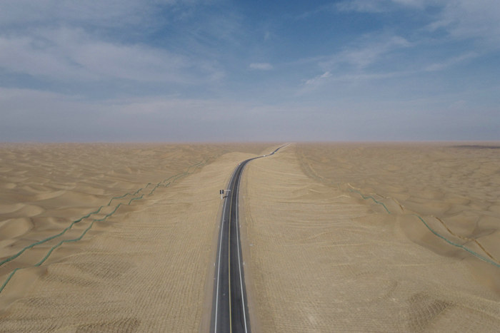 圖昆四標(biāo)沙漠公路.何衛(wèi)平攝據(jù)了解,圖昆沙漠公路全長(zhǎng)126.202公里。本合同段采用二級(jí)公路標(biāo)準(zhǔn)建設(shè),路線(xiàn)全長(zhǎng)55.845km,設(shè)計(jì)時(shí)速為 80km/h,本工程造價(jià)2.96億元,這個(gè)項(xiàng)目技術(shù)標(biāo)準(zhǔn)高,施工難度大,大大小小的沙包有500多個(gè),其中最高的沙包18.3米,最低的沙坑16.4米。