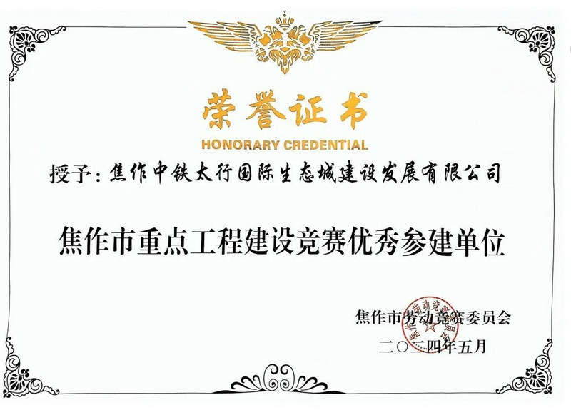 近日,焦作生態(tài)城公司獲得了“2023年度焦作市重點工程建設競賽優(yōu)秀參建單位”榮譽,為樹立企業(yè)外部形象、推動中鐵中產置業(yè)公司高質量發(fā)展做出了積極貢獻。